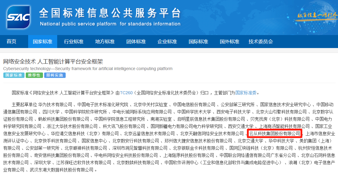 近日,國家標準GB/T 45958-2025《網絡安全技術 人工智能計算平臺安全框架》正式發(fā)布。該標準由全國網絡安全標準化技術委員會歸口管理,華為技術有限公司牽頭,云從科技作為核心起草單位之一,深度參與了標準制定工作。 這項將于2026年2月1日正式實施的國家標準,為人工智能計算平臺建立了系統(tǒng)化的安全框架,規(guī)定了安全功能、安全管理和角色安全職責,將有效應對硬件漏洞、訓練數據泄露、對抗樣本攻擊等新型安全威脅。